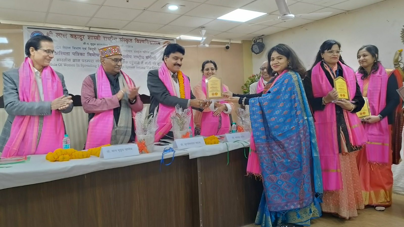 The inspiring presence of Mrs. Surabhi Lata, Founder of the Global Sanskrit Forum, added special dignity to the event. During the conference, 20 distinguished women scholars were also honoured for their remarkable contributions by Prof. Kapil Mehta, International Vice President of the Global Sanskrit Forum, and Dr. Rajesh Kumar Mishra, International Secretary and Editor-in-Chief of ASMITAA. On this occasion, Jyotsnaa G. Bansal was honoured with the Arundhati International Vidushi Award, and Dr. Nidhi Vedratna was honoured with the Anasuya International Vidushi Award.